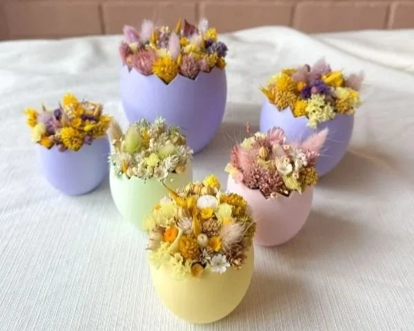 Onder begeleiding van Emma van Fille Fleur maak je een set van twee prachtige paaseitjes (één klein en één middelgroot), gevuld met droogbloemen en volledig afgestemd op jouw eigen stijl. Een warme en verfijnde paasdecoratie voor in huis.